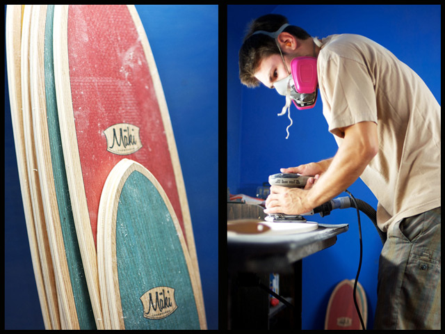 After pushing and leaning into a few tight pavement lines, he and I went inside to talk about his project. Erik Maki, the visionary behind Maki Longboards, is completely passionate toward his endeavor. I could feel his enthusiasm in both his board designs and the materials / processes going into each one. One topic that really stoked me was his approach to maintain complete wood rawness with using Entropy Bio Resin. Erik emphasized that each board he crafts is progressing to higher performance levels with rider feedback while also mastering the sustainable design science. Did I mention that his boards look slick. No Graphics. Just Rawness. Please check out makilongboards.com. Had the pleasure to ride his Skipper shape...could not have trimmed more this past weekend. Thanks Erik!